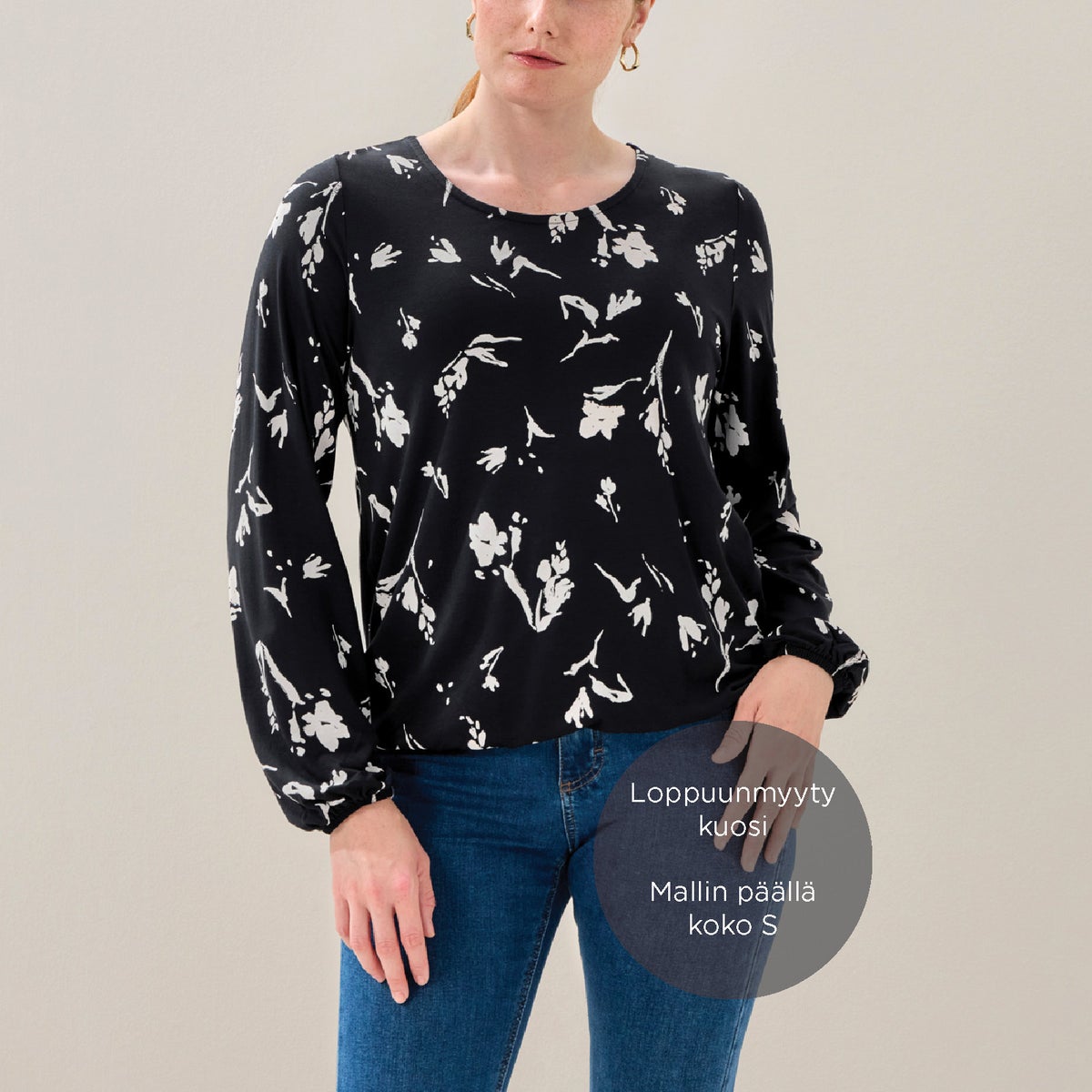 – Pitkähihainen naisten pusero JÄTTIKARVIAISET kuosilla mustan ja vaalean sävyissä